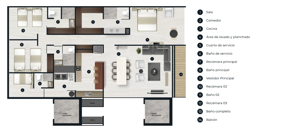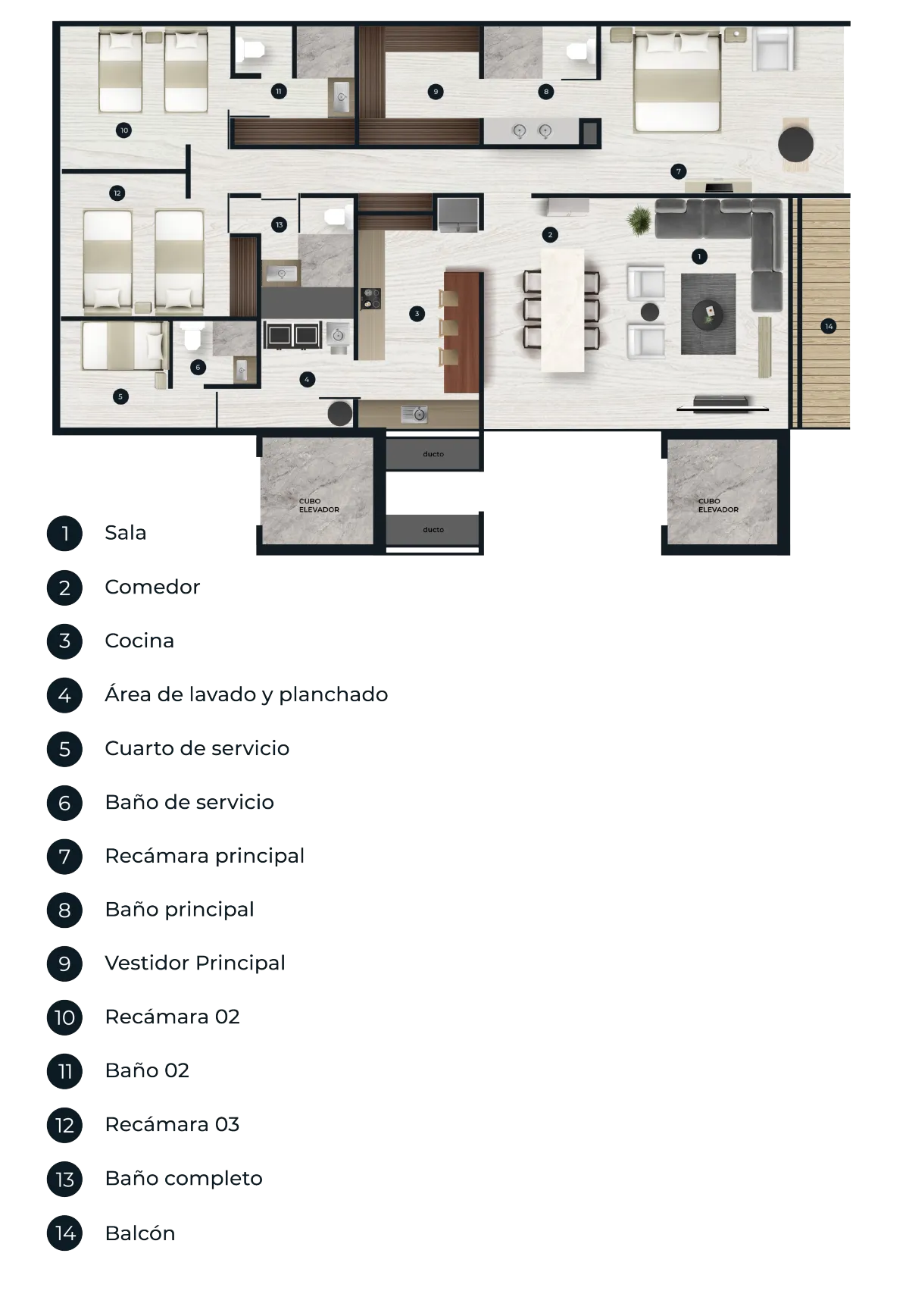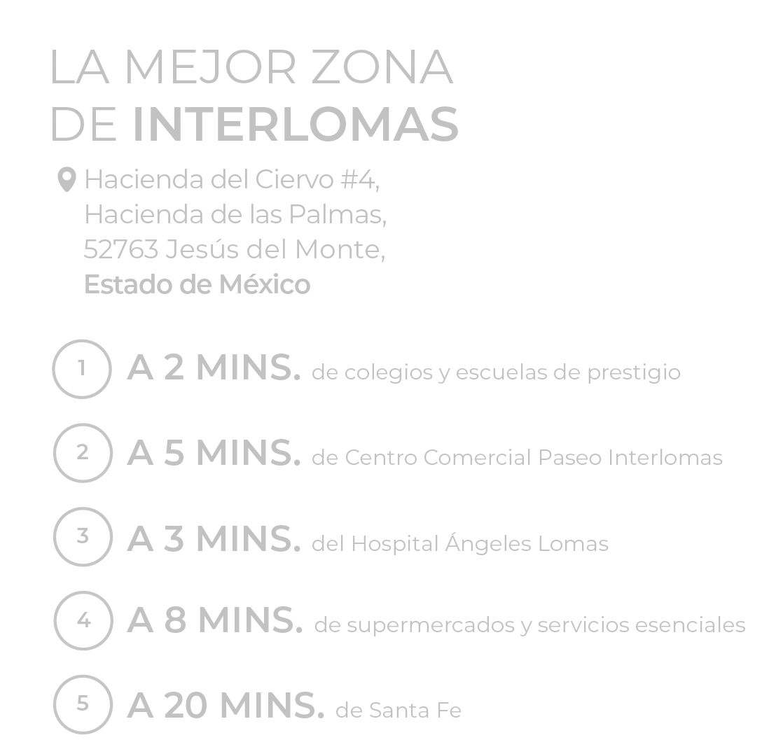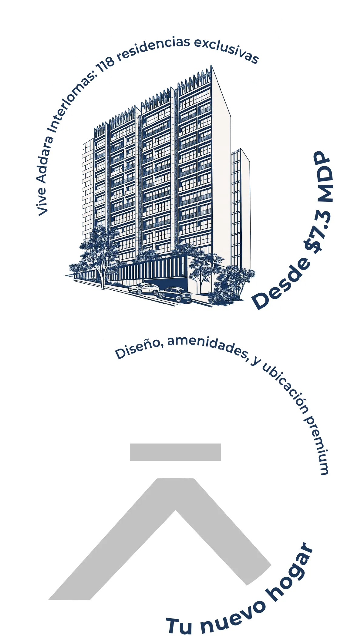 Proyecto residencial de diseño cosmopolita y estilo moderno en el corazón de Interlomas. Compuesto por cuatro torres con 118 departamentos, cada uno de aproximadamente 160 m², con una distribución eficiente que privilegia la comodidad y la funcionalidad.